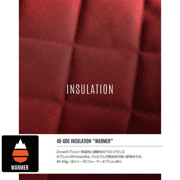 リラックスしたプラスフィットで、40gの軽量インサレーションを意識することなく、より快適に過ごすことができます。